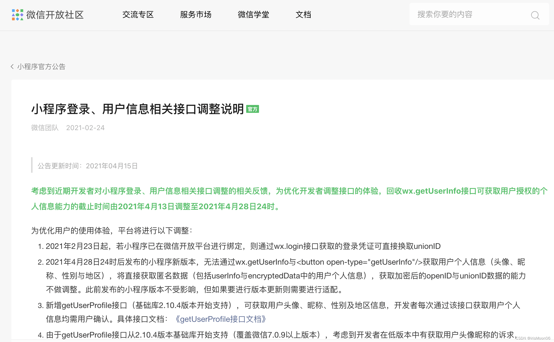 本文介绍了微信小程序官方关于uniapp中getUserInfo方法的新规定,不再直接返回用户头像、昵称和手机号。开发者需通过code获取openid等信息,通过后台接口进行登录并使用pinia存储token以实现持久化。