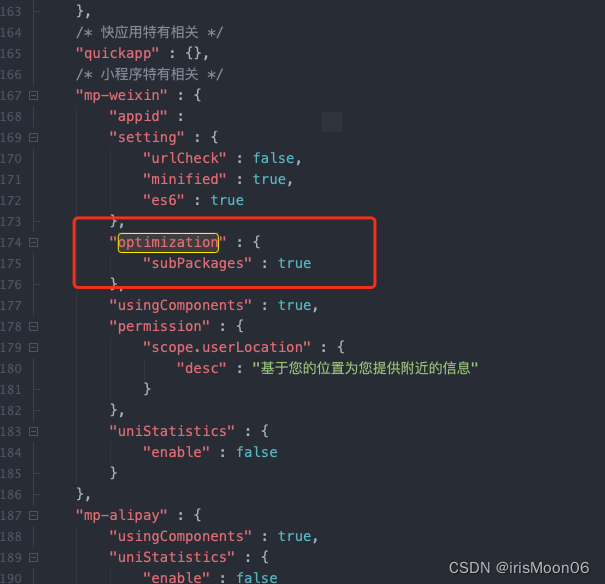 打开manifest.json源码视图,添加 “optimization”:{“subPackages”:true} 开启分包优化