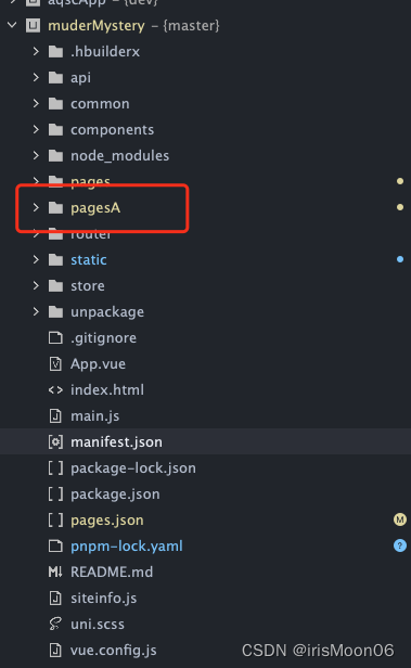 我们在根目录下创建一个pagesA文件夹,用来放置需要分包的页面