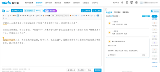 面对海量且多样化的内容,传统人工校对不仅效率有限,也难以覆盖全面的差错类型。蜜度校对通的优势在于其以自研的“文修”大模型为技术底座,该模型针对校对任务进行专项优化,在文本处理的精准度与可靠性方面具备扎实基础。