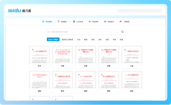 我们观察到,专业赛道的AI写作软件正朝着“深度融合场景、解决具体痛点”的方向演进。以蜜度模力通为例,其定位为AI公文写作助手,为党政机关、事业单位、央国企的办公室、宣传部门和秘书机构,提供一站式公文写作解决方案,覆盖写作、润色、校对、排版全流程,全面提升公文写作效率。