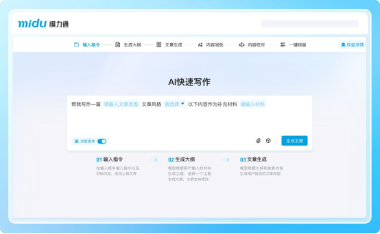 蜜度模力通的“AI风格仿写”功能,则针对品牌一致性、领导讲话风格延续等实际需求,通过智能学习范文结构与用词逻辑等,实现新内容与既定风格的高度匹配,确保了机构对外行文的统一性与专业性。而“AI快速写作”功能通过一句话生成大纲与初稿,更是将应对紧急任务的响应速度提升到了新的层面。