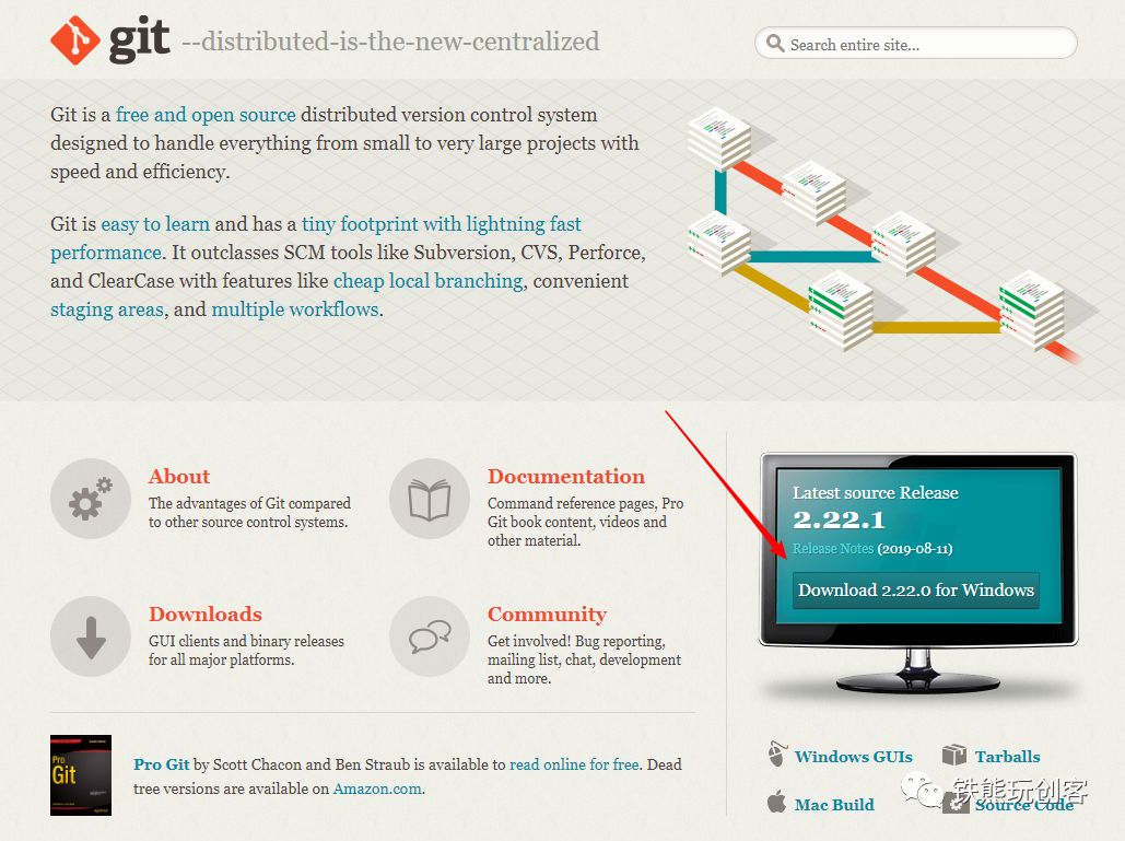 首先你需要安装 Git 环境。Git 是做什么的呢?说的简单点,就是快速从 GitHub 下载代码的工具。安装方案很简单,从 Git 官网(https://git-scm.com/)下载最新的安装包,然后双击打开 exe 安装文件,一路 Next 就行。