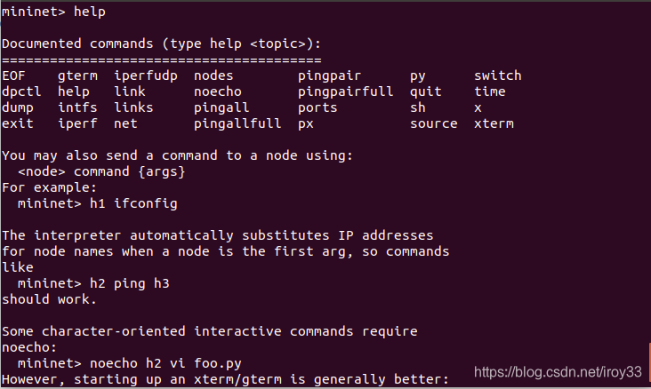 help可查看在mininet下可执行的所有命令