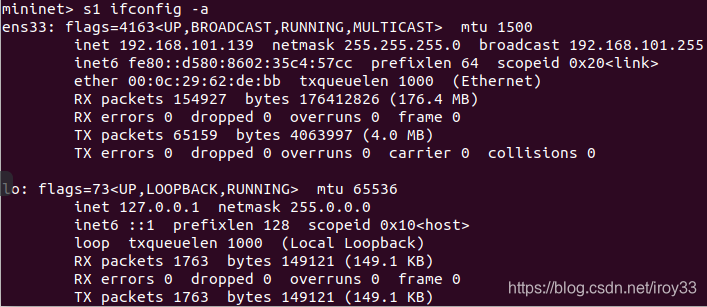 s1 ifconfig -a会显示s1的interface