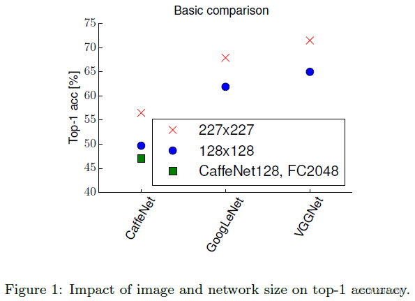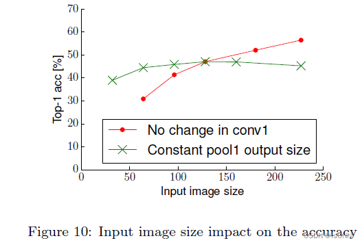 从大尺寸图像中获得的准确性增长主要是因为可以获得更深的卷积层数,而不是因为包含了更多不可见的图像细节。