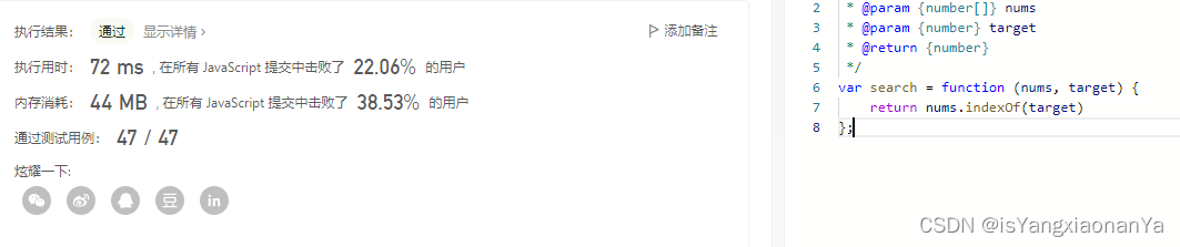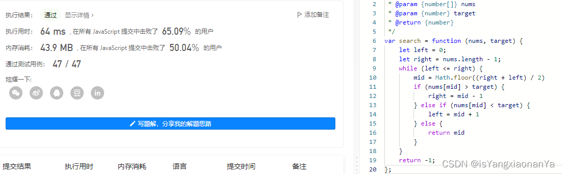 这道题就是一道典型的二分查找,虽然看见题的第一眼还是想到了api大法。使用IndexOf就是这个功能,