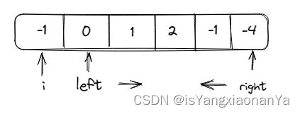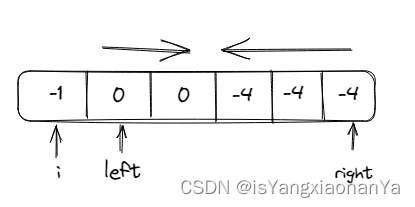 i,left,right分别为a,b,c三个数字,i是遍历的指针,left是i的下一位,right是数组的最后一个元素。