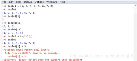 元组:封闭的列表,一旦定义,就不可改变(不能添加、删除或修改)。