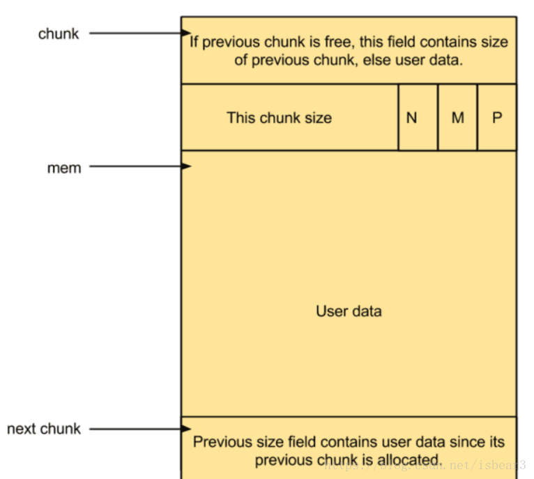 - M:置1表示该chunk是调用mmap而产生的(即被映射到了其他的内存空间中)