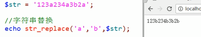 str_replase(查找目标,替换内容,字符串):将目标字符串中部分字符串进行替换。