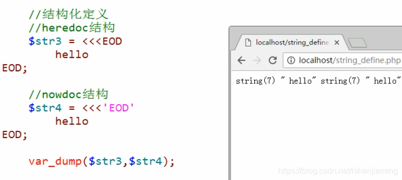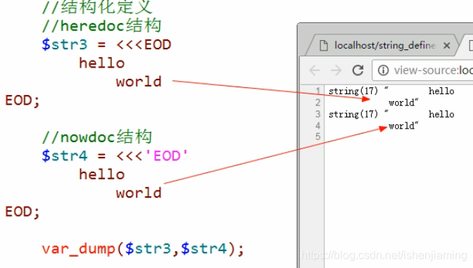 heredoc和nowdoc比引号字符串还是要区别多一点,见下图: