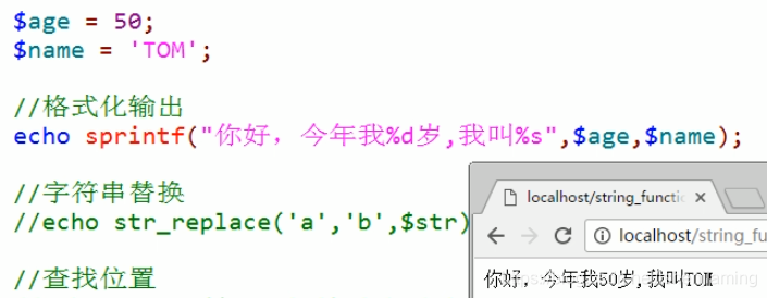 printf():/sprintf():按指定占位符格式输出格式化字符串(类似C语言printf)。占位符见sprintf()参考手册。