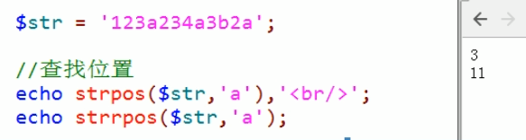 strpos():查找字符串首次出现的位置(位置计数从0开始)