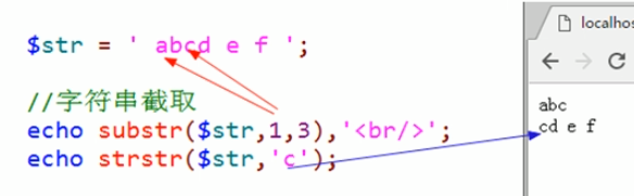 $rest = substr("abcdef", 2, -1); // 返回 "cde"