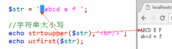 注意如上图代码,$str字符串首字符是空格,不是字母。所以ucfirst没起效。