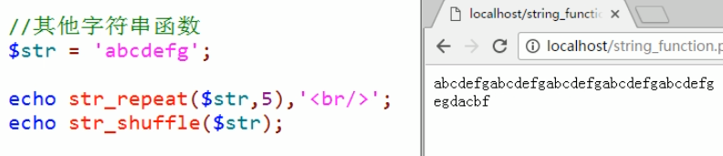 str_split(字符串,分割长度):将字符串按分割长度转换为数组,示例如下: