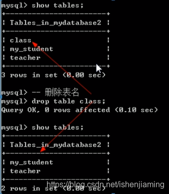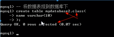 代码演示了在已存在的数据库mydatabase2中创建数据表class.