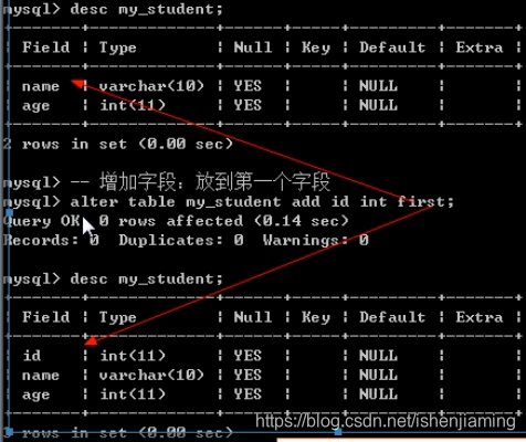 字段位置:first:第一个字段; after 字段名:放置在某字段名之后.