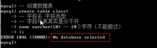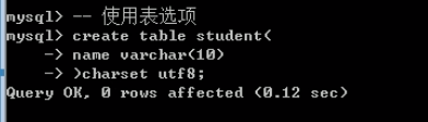 基本语法: create table 表名(字段名 字段类型 [字段属性],字段名 字段类型 [字段属性],... ) [表选项];