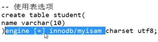 - 修改已有表的存储引擎: alter table 表名 engine=innodb;