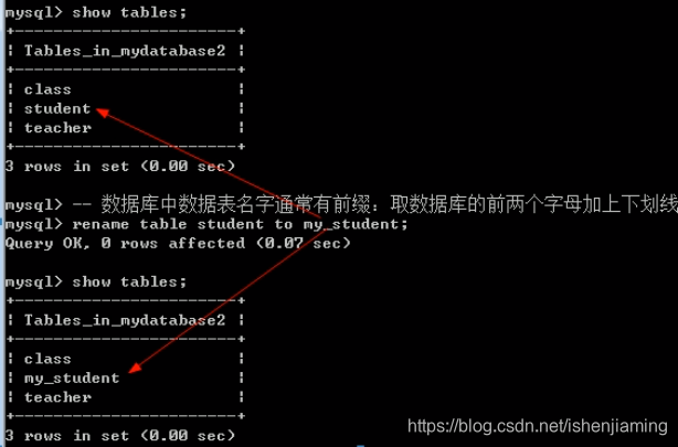 alter table 表名 change 旧字段名 新字段名 字段类型 [列属性] [新位置]