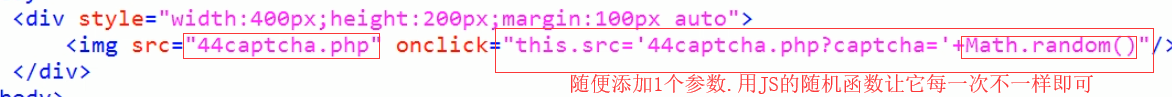 b.实现点击更换验证码:让src重新请求php脚本,产生一张新的图片.因此需要给img标签增加一个点击事件.