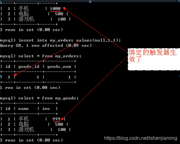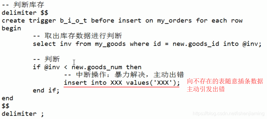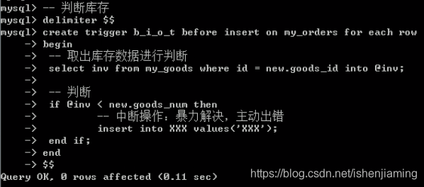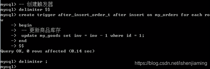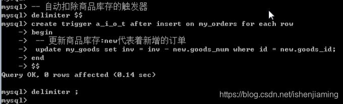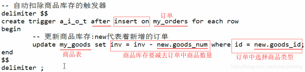 2.创建触发器:如果订单表发生数据插入,对应的商品就应该减少库存