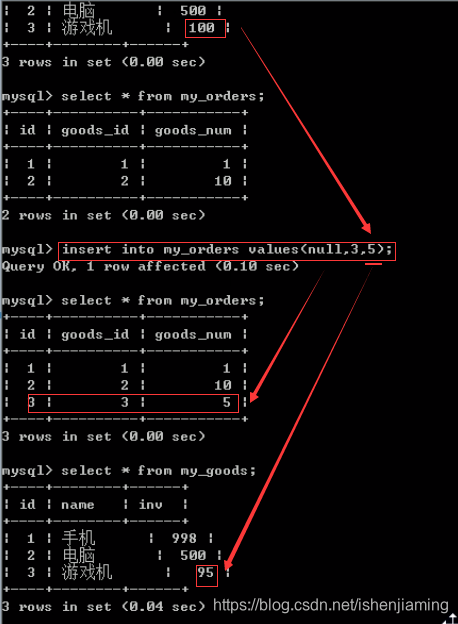 需求:有两张表,一张商品表,一张订单表(保留商品ID),每次订单生成,商品表中对应的库存就应该发生变化.