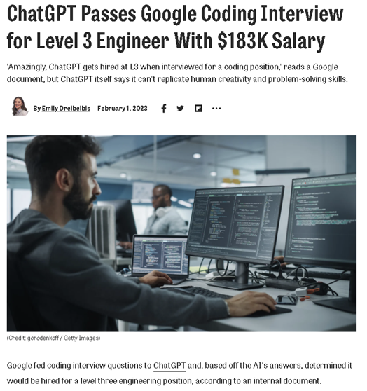 ChatGPT 甚至通过了谷歌L3工程师职位的编程面试,如果它去上班,年薪就能拿到 124万元,但它真的能替代程序员吗?