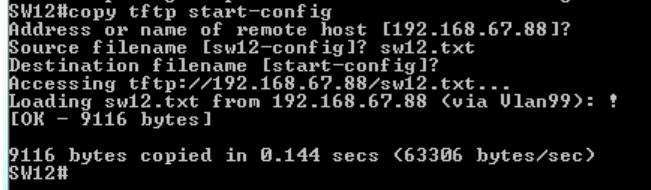 导入成功后,在交换机用sh run查看配置,用sh vlan b 查看下vlan是否替换成功,在特权模式下wr,reload重启。