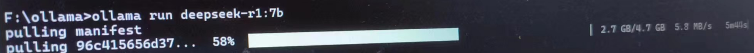 等待第4步Ollama安装完成后,继续输入部署DeepSeek r1的命令。
