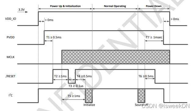 6) MCLK信号应在I2C初始化序列(T5)之前至少1秒到达≥1毫秒)。