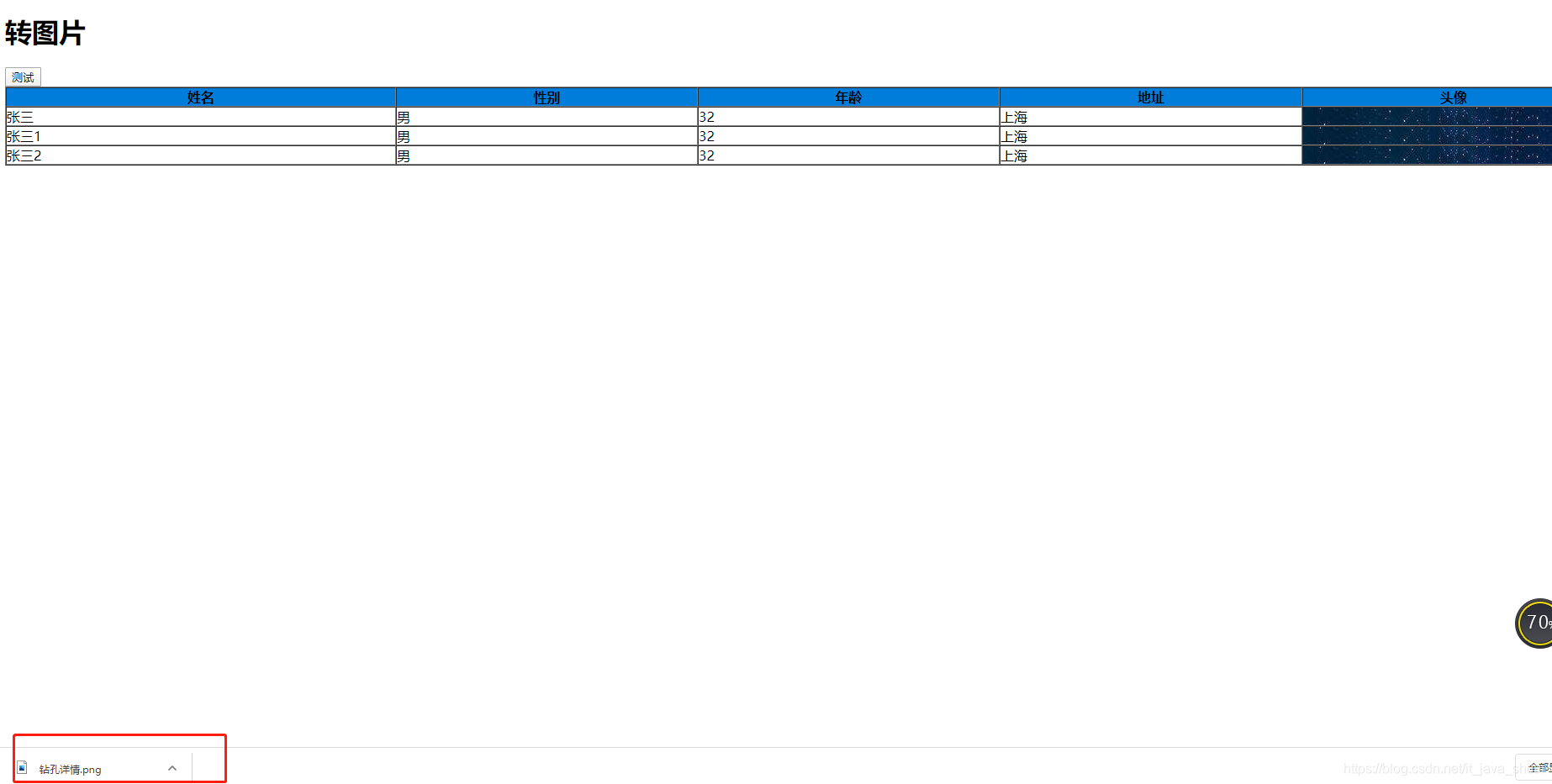思路是这样的,有一个js文件(html2canvas.min.js)可以将指定的元素转成canvas,而casvas可以转成图片,这样就可以下载了。