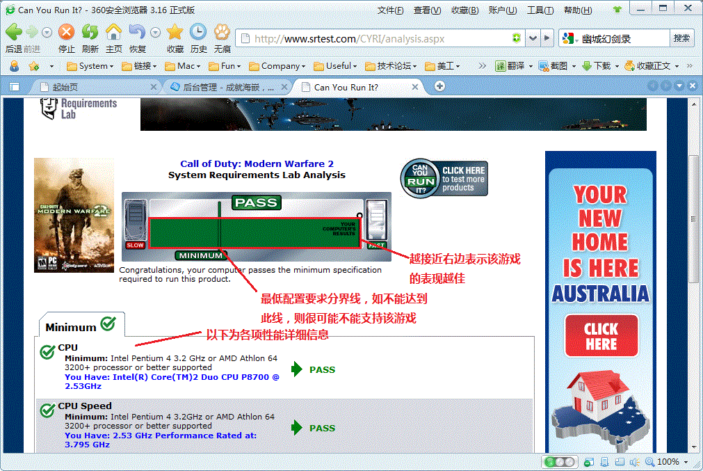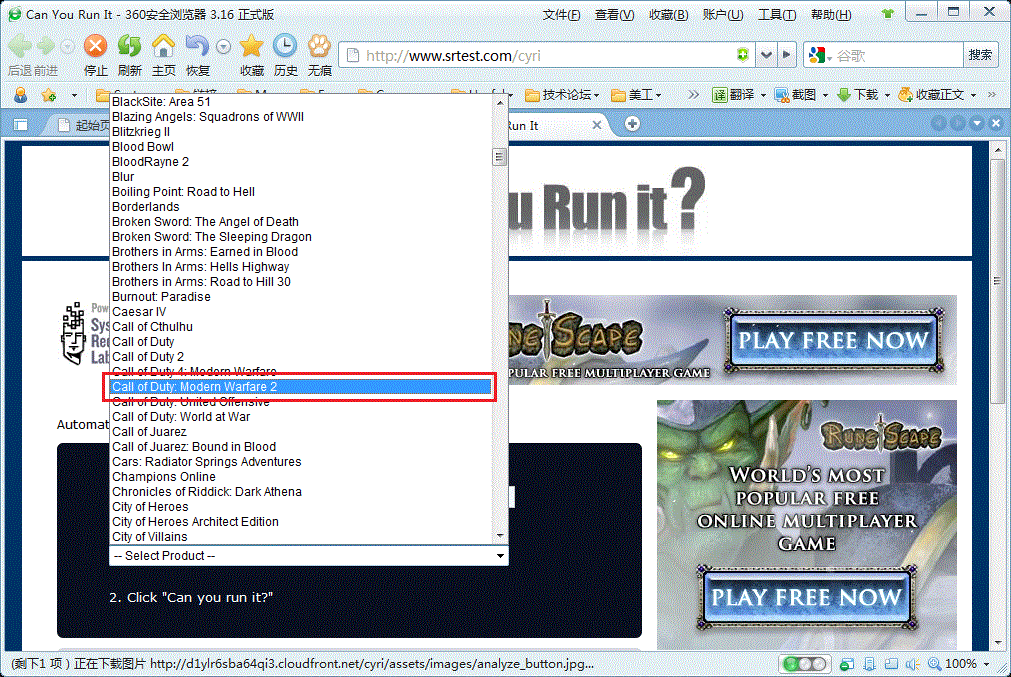 这个网站可以检测用户的PC是否能够满足某游戏配置要求。下面笔者以 使命召唤6:现代战争2 为例,介绍一下该网站的使用。
