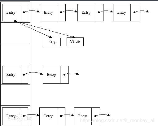 在JDK1.7之前,HashMap采用的是数组+链表的结构,其结构图如下: