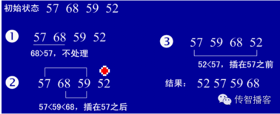 (1)基本思想:在要排序的一组数中,假设前面(n-1) [n>=2] 个数已经是排好顺序的,现在要把第n个数插到前面的有序数中,使得这n个数