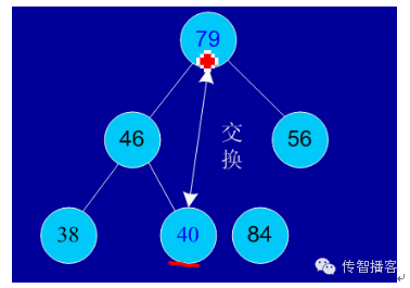 依次类推:最后堆中剩余的最后两个结点交换,踢出一个,排序完成。