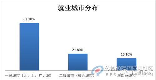 究竟是什么原因促使那么多的人坚持留在一线城市发展呢?首先,从地理分布上来看,软件企业主要集中在北京、上海、广州、深圳等地,产业集中的优势让毕业生在这些城市的就业难度大大降低。其次,一线城市良好的工作环境、易于短期迅速积累工作经验,另外一线城市较高的薪资水平也可以顺利地解决大学生毕业后遇到的实际难题。相反,二三线城市高级人才少,名气低,交流与探讨的视野受到限制,产业环境落后,公司不够规范,是大多数IT人才不愿回到生活更舒适的二线城市长期发展的重要原因。