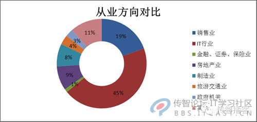 调查结果表明越来越多的人选择IT行业,IT是目前中国发展最快,最有前景的产业。市场需求旺盛,国家扶持力度大是薪资涨幅一路走高的直接原因。随着信息技术在各行各业的逐步深入和广泛应用,各类计算机相关专业技术人才需求都呈上升态势。门槛低,薪资高,机会多,发展前景好,IT行业将是你择业的最优选择。
