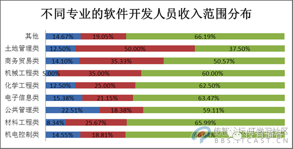 不是计算机相关专业的毕业生就不能从事的软件开发吗?由优快云黑马程序员和传智播客共同推出的2014年开发者生存调研报告给出的答案是否定的。该报告指出,90%的计算机科班出身的学员确实拿到了8000元以上的薪资;但紧随其后的工商管理类、机电控制类、材料工程类等专业的学员,同样取得了80.05%、76.64%、74.99%高收入比例。