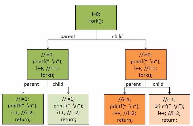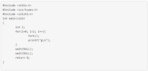 也许你很快就说,那么简单,第一次循环,fork后2个进程,第二次再fork出4个,一共6个进程,肯定是6个“g”。