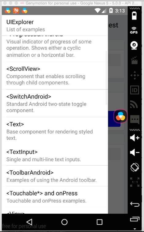 刚开始一直使用一个5.0的设备进行ReactAndorid的测试和开发,后来方向,其实搞上一个5.0+的genymotion模拟器联调起来效率会更高。