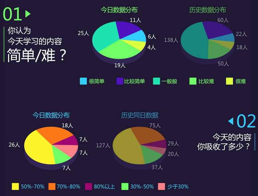 教学反馈系统,统计着我们每天学员的吸收情况,老师也会根据其数据进行分析、调整内容、调整节奏,最终让同学们可以吸收的更多。