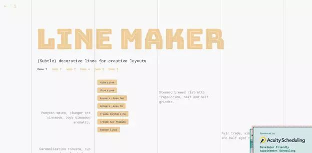 Line Maker一个插件用于你的网站上创建具有动画效果的装饰线。 这个插件显示了添加各种各样的线条简单的方法有不同的厚度和颜色,在垂直或水平方向,和动画。