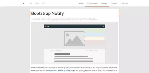 Bootstrap Notify 是一个简单的插件能够将标准的 Bootstrap alerts 转成类似于“Growl”的通知。