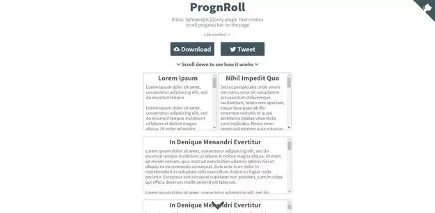 PrognRoll 是一个微小的 jQuery 插件,用于在页面上创建滚动进度条。 您还可以自定义进度条。