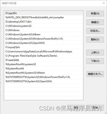 移动的好处:在CMD中打开软件时,会先找当前路径,再找环境变量,在环境变量中是从上往下依次查找的,如果路径放在最上面查找的速度比较快。