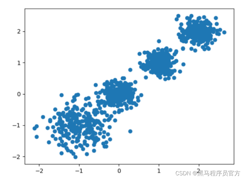 # 簇中心在[-1,-1], [0,0],[1,1], [2,2], 簇方差分别为[0.4, 0.2, 0.2, 0.2]