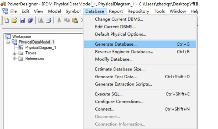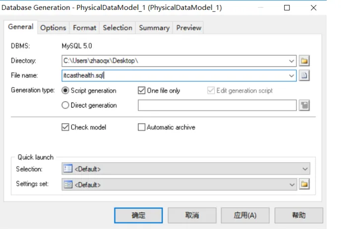 (1)根据资料中提供的itcasthealth.pdm文件导出SQL脚本
